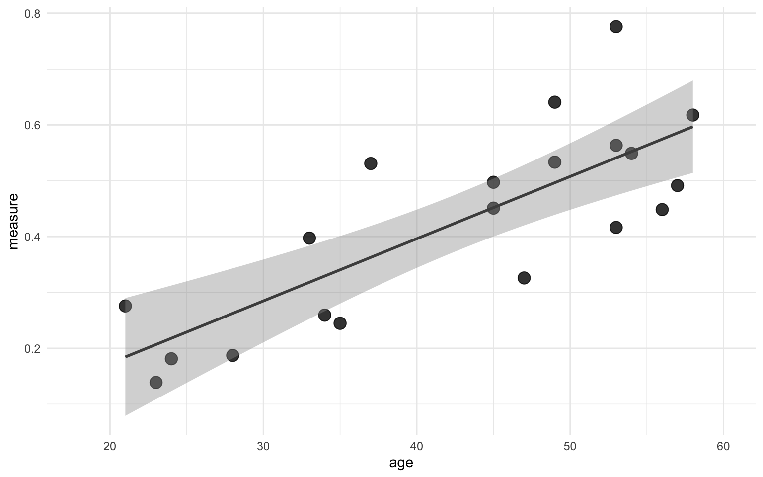 geom_smooth(aes(y = measure), method = "lm", color = "grey30") +