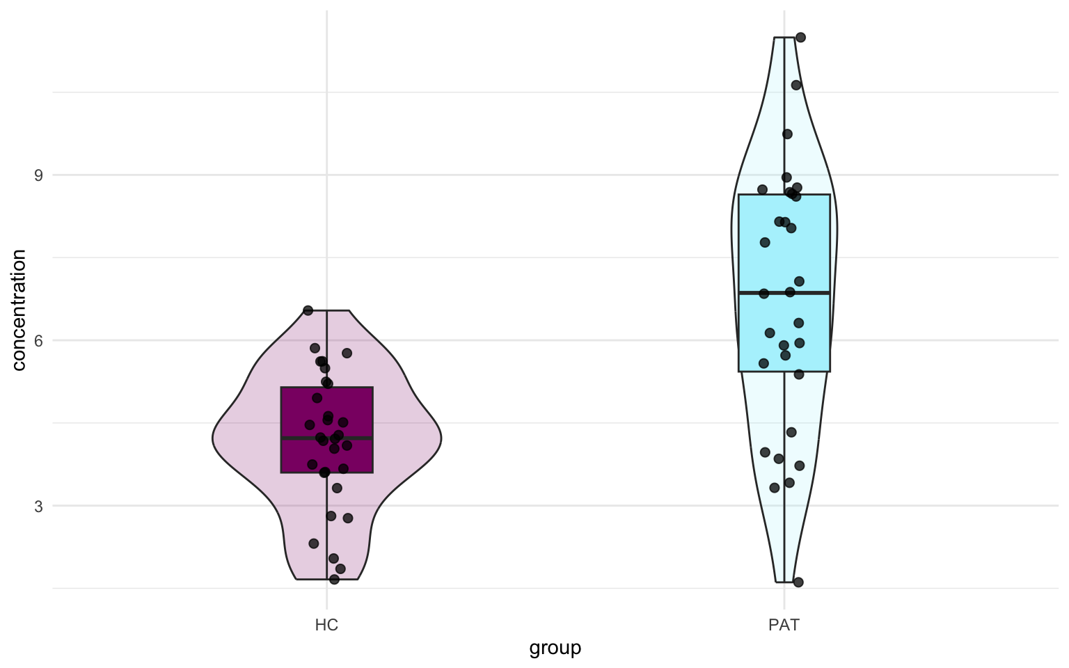 ggplot(data, aes(x = group, y = concentration, fill = group)) +