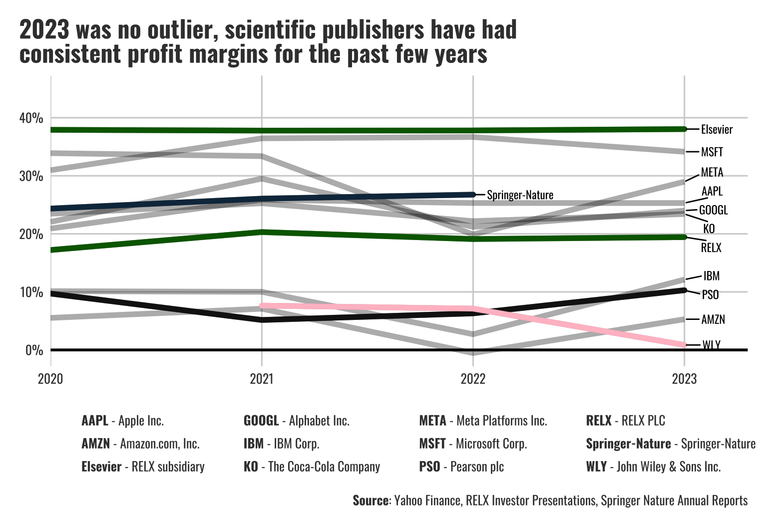 title = "2023 was no outlier, scientific publishers have had<br>consistent profit margins for the past few years",